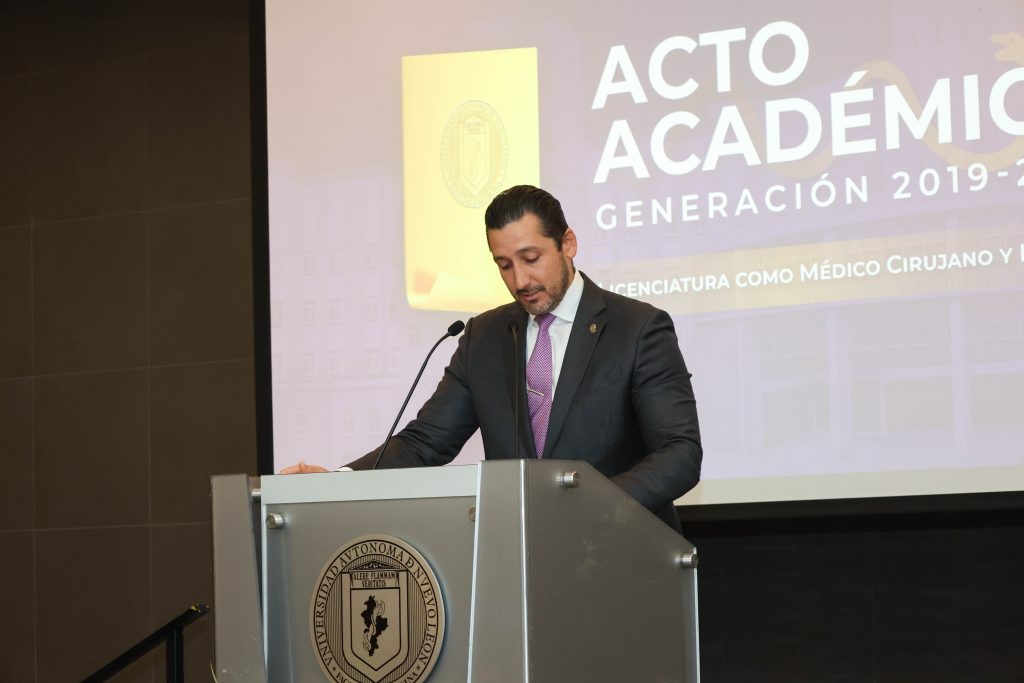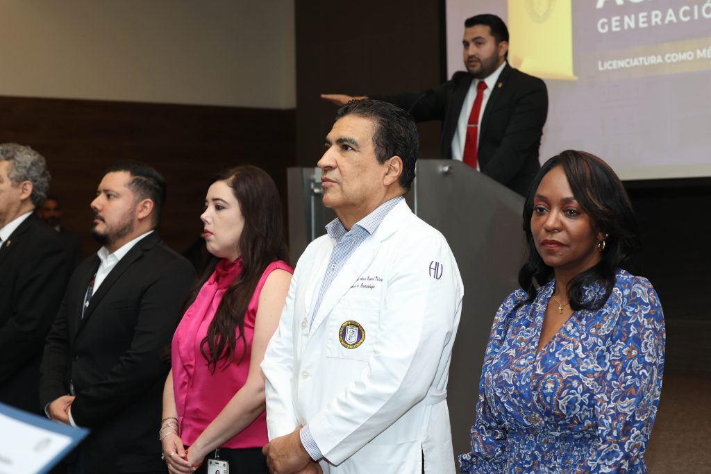 El evento fue presidido por el Dr. C. Rafael Piñeiro Retif, Secretario Técnico de la Dirección, Dr. med. Ricardo Ibarra Patiño, Subdirector de Estudios de Pregrado de la Licenciatura como Médico Cirujano y Partero, Dr. C. Rodrigo Enrique Elizondo Omaña, Secretario Académico, Dr. Alfonso Salinas Zertuche, Maestro de Ceremonias, así como profesores de nuestra institución.