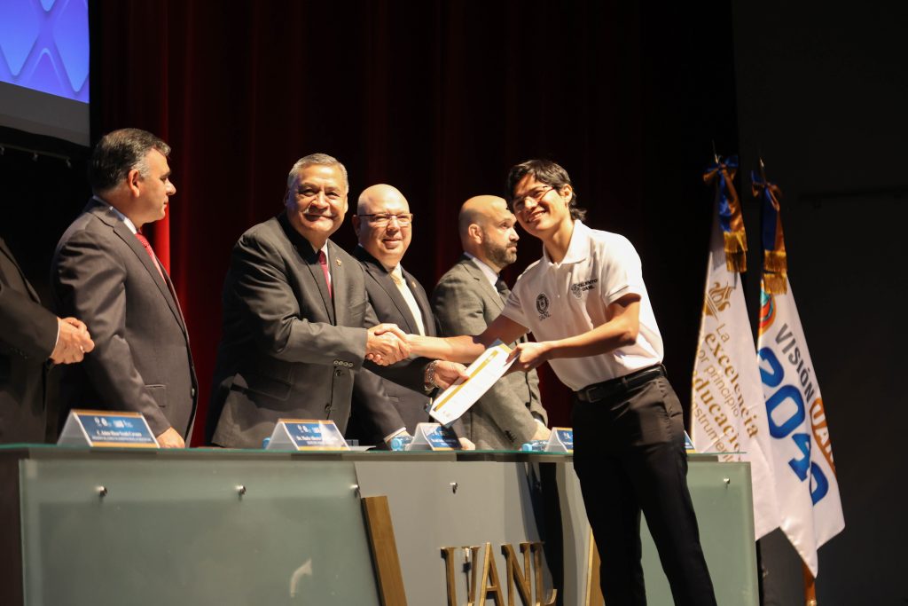 tres a cinco años de continuidad en este programa. La ceremonia fue presidida por el Rector, Dr. med. Santos Guzmán López, y contó con la presencia de nuestro Director, Dr. med. Oscar Vidal Gutiérrez, quien acompañó a nuestros estudiantes en este honorífico acto.