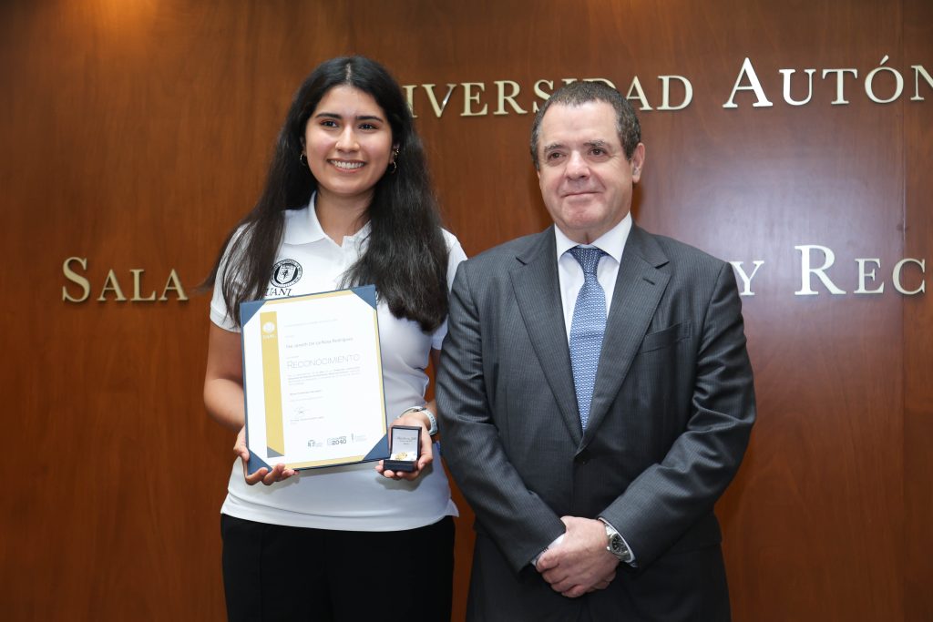 Recibieron este reconocimiento los estudiantes Iván Dimitry Ruiz Esparza, de la licenciatura como Médico Cirujano y Partero, y Valeria Hernández Morales, de la licenciatura como Químico Clínico