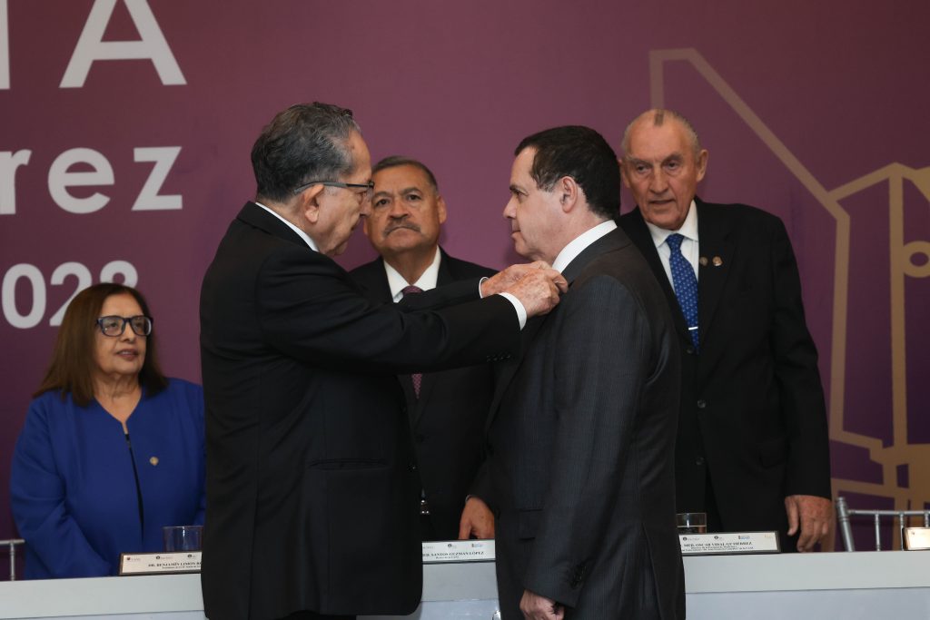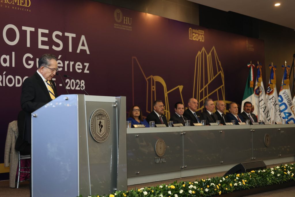 Para concluir el acto, destacó que el liderazgo institucional es una tarea colectiva, construida desde cada persona, área y cada función, con una visión orientada a enfrentar nuevos retos y consolidar logros para este segundo periodo de gestión en beneficio de la Facultad de Medicina y Hospital Universitario de la UANL.