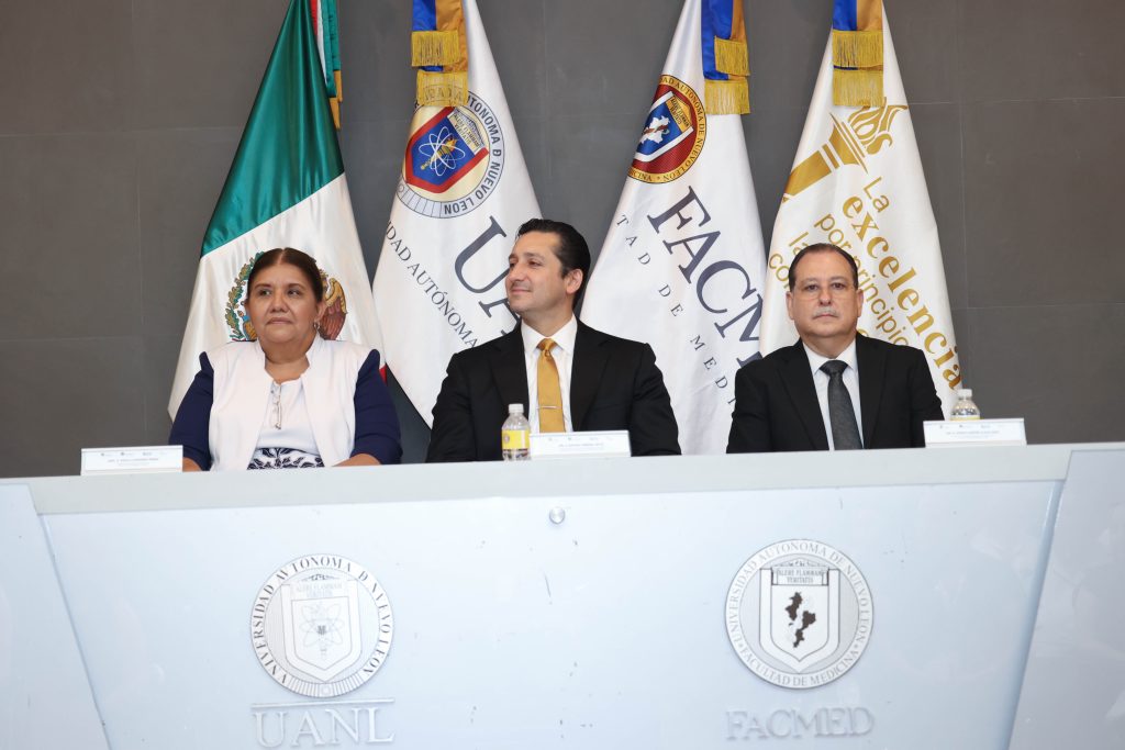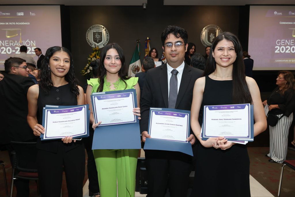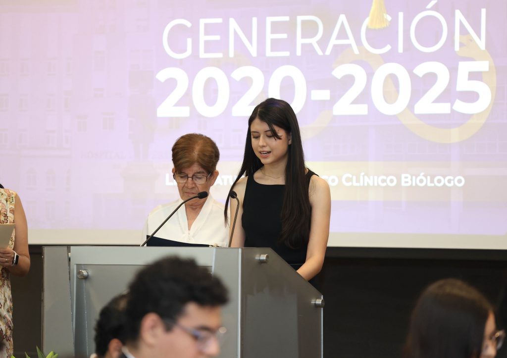 Se llevó a cabo la Ceremonia de Acto Académico de la generación 2020-2025 de la Licenciatura de Químico Clínico Biólogo, presidida por el Dr. C. Rafael Piñeiro Retif, Secretario Técnico en representación de la Dirección, la Dra. C. Paula Cordero Pérez, Subdirectora de Estudios de Pregrado de esta licenciatura, el Dr. E. Jorge Martín Llaca Díaz, Secretario Académico y la Dra. C. María de Lourdes Garza Rodríguez, quien fungió como maestra de ceremonia, acompañados por los representantes estudiantiles de la Sociedad de Estudiantes de nuestra Facultad de Medicina de la UANL.