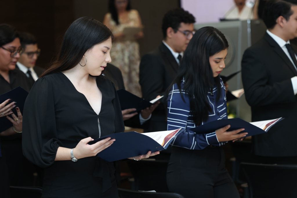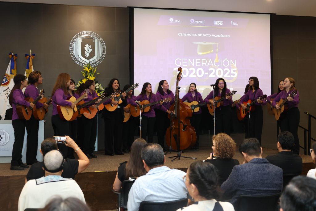 Como parte del programa, se llevó a cabo la presentación de la Rondalla Femenil de la Facultad de Medicina de la UANL, en la cual Alexia Abigail Amaro Torres, ahora egresada, participó en compañía del grupo, marcando el cierre de su etapa en la Rondalla. Asimismo, se realizó la lectura del Juramento del Químico, a cargo de la MES. Blanca Esthela Alemán García y la QCB. Marisol Idalí Serrano Sandoval, en presencia de profesores y miembros del comité de titulación, honrando el acto con los principios que los egresados de esta licenciatura asumen como compromiso en su profesión.