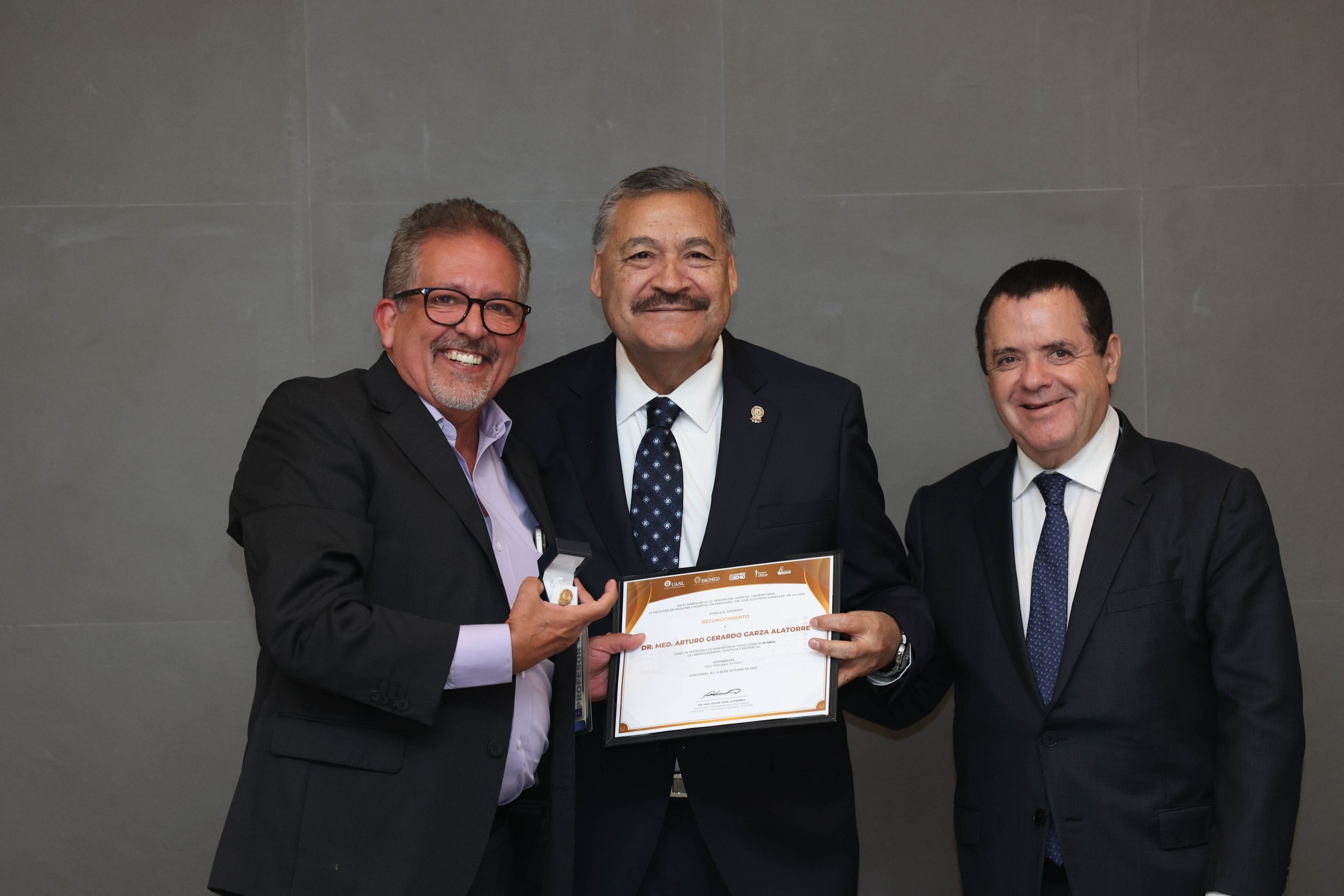 Este esfuerzo consolida un estimado de 400 profesores con nombramiento, reflejando además un incremento en los procesos de basificación y cambios de categoría, logros alcanzados durante la administración del Dr. med. Oscar Vidal Gutiérrez, Director de la Facultad de Medicina y Hospital Universitario de la UANL, con el respaldo del Dr. med. Santos Guzmán López, Rector de la Universidad Autónoma de Nuevo León. Ambas autoridades presidieron la ceremonia, en la que se destacó el profundo sentido de responsabilidad, vocación y compromiso institucional que caracteriza a la planta docente de la Facultad de Medicina y Hospital Universitario “Dr. José Eleuterio González”.
